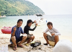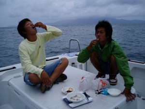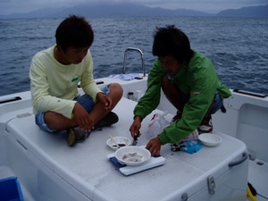 早速船上で調理を! |