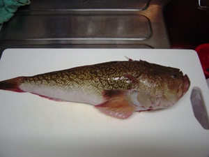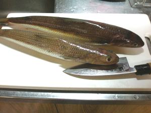 ヌルヌルとした魚体と大きな角に気をつけて怪我をしないよう調理しました。 |