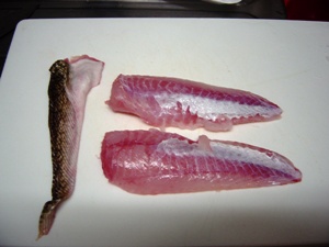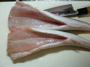 三枚に下ろすと意外とキレイな身がなんとも美味しそうで、刺身でもいけそうかな?
