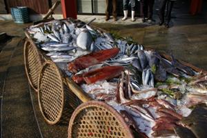 サゴシ、寒ブリ、タルイカ、サンマ、メダイ、ホウボウなど、美味しそうな鮮魚が並んでいました。 |