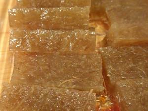 丹後には「うご」という海草を、トコロテンのように固めて作った食べ物があります。たまに地元の魚屋さんで加工したものを売っていますが、あまり一般的に流通はしていません。どちらかと言えば、地元の漁師さんが個人的に作り、お祭りに親戚・友人などに配るといった感じで、作る人によって味も風味も微妙に違います。私が頂くところの「うご」はほんとうに美味しく、いつも楽しみにしています。