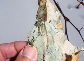 やっぱり!何かの幼虫でした!寒い冬を越すための工夫なんだね |