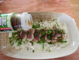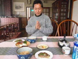 自然食品について熱く語る「ペンション自給自足」のオーナー勅使河原さんです。 |