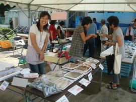 鮮魚や地元の果物、鯛飯などが販売され