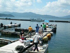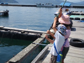 | 真鯛1匹1,000円の釣り堀。入れ食い状態で釣れていた。 |