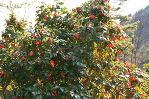 広大な園内には遊歩道も整備され、約1,500種3万本のツバキが植えられており、次々と花を咲かせています。また、屋内展示場では珍しい品種の展示や苗木の販売も行われています。国内有数のツバキ園だけあって、桜のように可愛い花からバラのように色鮮やかな花、ボタンのように豪華な花まで、これ程種類があるのかと驚くほど揃えられています。
