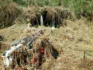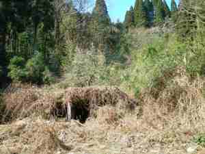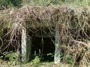 少し戻った所で民家の近くに構築物を発見!草に埋もれてはいるが何かそれらしき物だ。 |