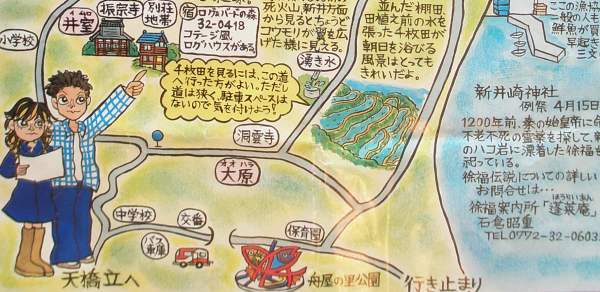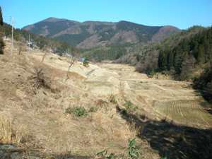 現場はマリントピアから車で約30分。国道178号線の大原から新井へ下りる道路の途中で、新井の千枚田で有名な場所だった。 |
