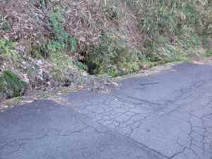 浦嶋公園を出て本庄浜の方へ少し行くと看板があった。そこにはちゃんと「竜宮に通ずる穴」と記されている。 |