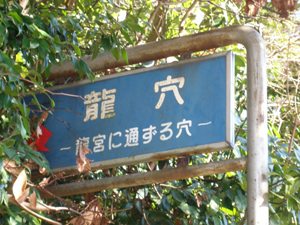 よく見るとそこには、浦島太郎が竜宮城から帰ってきた穴としるされている。これを見るや否や私のこれまでの知識と常識は完全に打ち砕かれてしまった。私の記憶では、浦島太郎は気が付けば浜に打ち上げられていたとなっており、海底から戻ってきた事になってい |