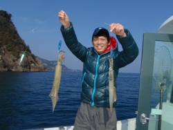 産み付けられ、産卵後は死んでしまうので、寿命は1年ということです。雄は胴体の長さが40cm程になりますが、雌は大きくなっても30cm前後しかならないようです。今回釣り揚げたのは全部40cmほどあったので雄のようですが、雄は雄ばかりで群れをつくっているのでしょうか?