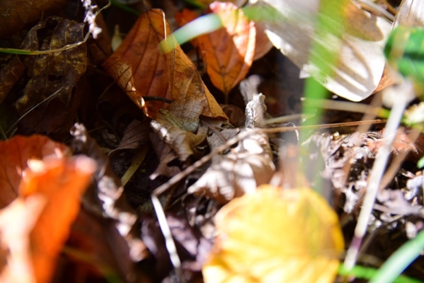 蝶が飛んで行った先を良く見るといました!分かりますか? うまく枯葉に擬態してます。