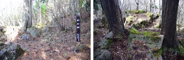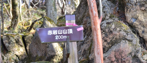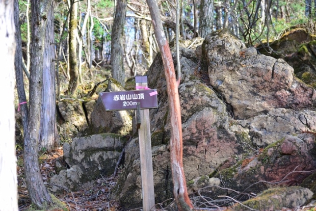 案内マップにあった「日本庭園」らしき岩の場所に、赤岩山山頂200mの立札がありました。
