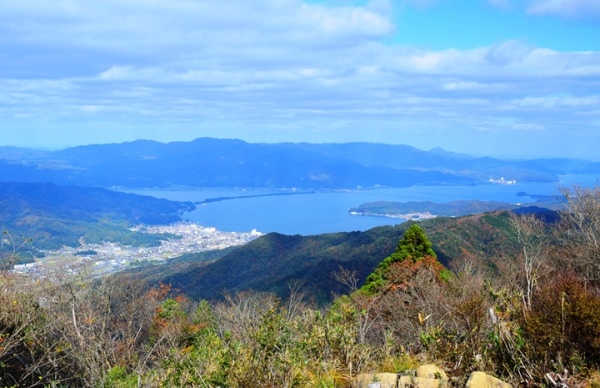 杉山山頂は低木が視界を遮り、見晴らしは良くありませんが、すぐ横の「宇野ヶ岳」からは、天橋立の全景と宮津湾が一望出来ます。 |