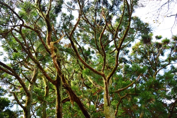 宮津の杉山も、山頂付近は岩の多い地質で栄養素が乏しく、海からの風も強く、その厳しい自然環境が独特の樹形にしていると思います。
