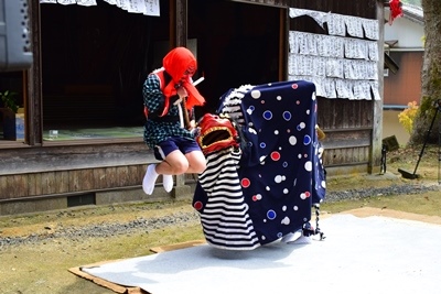 天狗は子供が演じており、ピョンピョン身軽に飛び跳ねます。