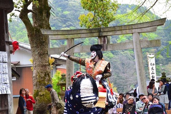 獅子の生け捕りを演じる和唐内(わとうない)は、迫力のある立ち回りと衣装の早変わりが見もので、京都府の無形民俗文化財に指定されています。