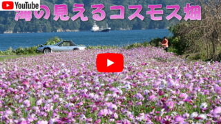 宮津市日置の田園を、貫くように真っ直ぐ走る国道178号線沿いのコスモス畑の花が見頃を迎えています。