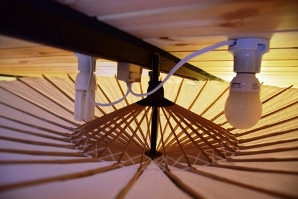 電球は傘の骨に当たらない位置に