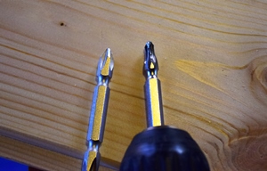 ここでも問題があり、ビスが溝に入る時、ドライバーの回転で溝の耳が傷つき面白くないので、ドライバーの先をグラインダーで細く削りました。